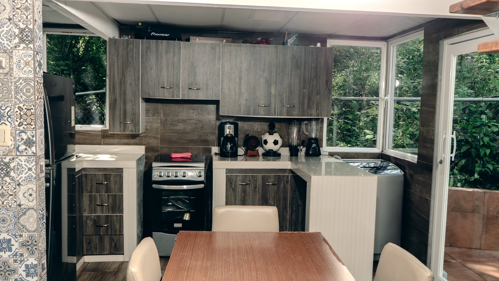 • Cocina completamente equipada (estufa, nevera, utensilios básicos)