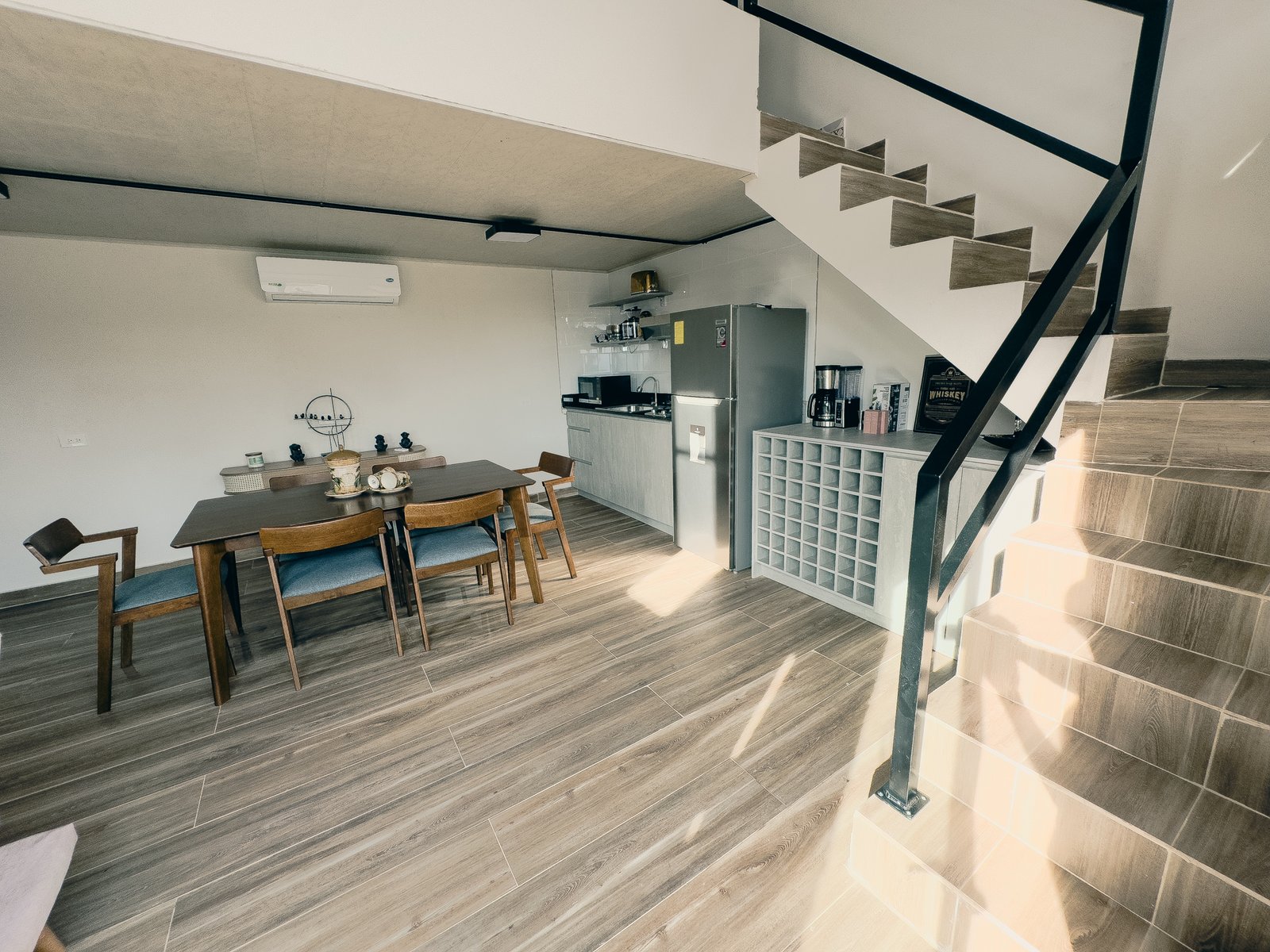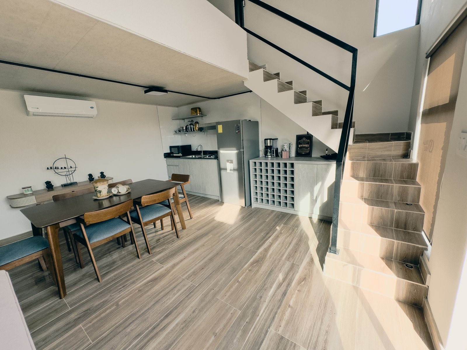 En el primer nivel encontrarás una cocina completamente equipada y un comedor espacioso para compartir comidas y momentos especiales. En el nivel superior, un loft con dos camas dobles y sofá cama ofrece un espacio cómodo para descansar, siempre acompañado del clima fresco y la tranquilidad de Chicá.