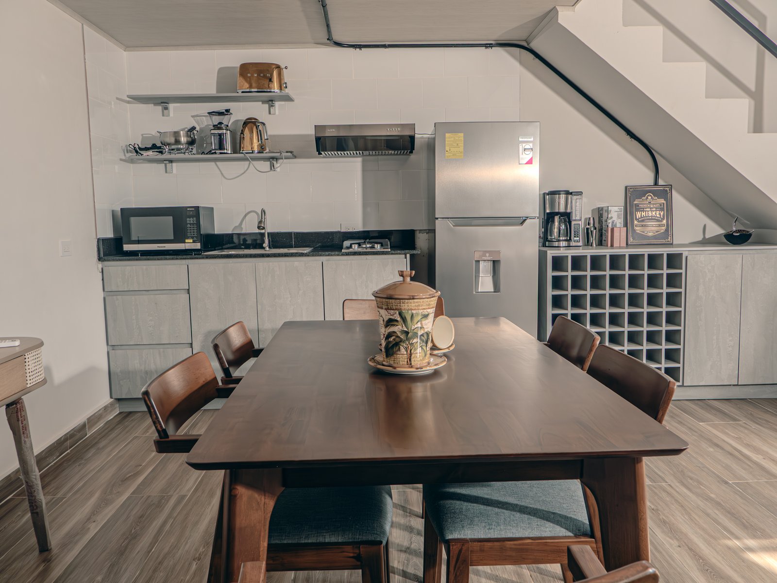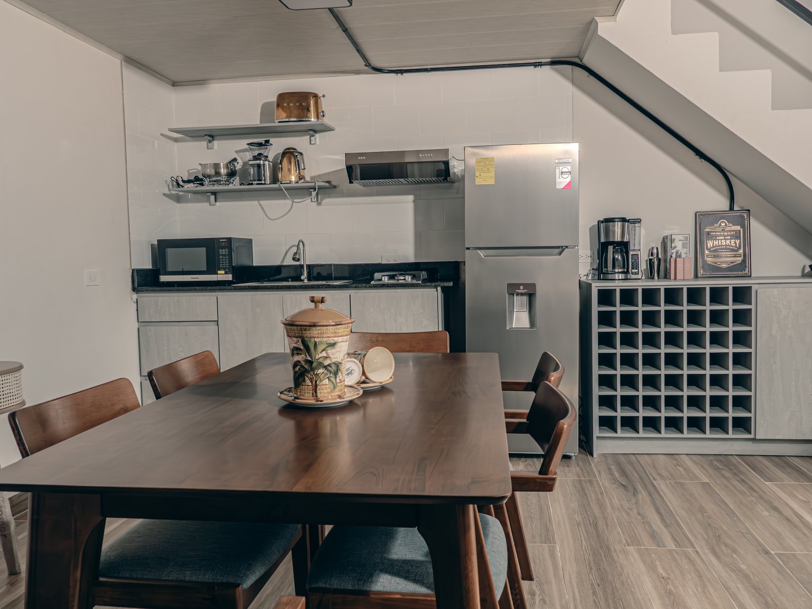 - Cocina completamente equipada (estufa, nevera, utensilios básicos)
